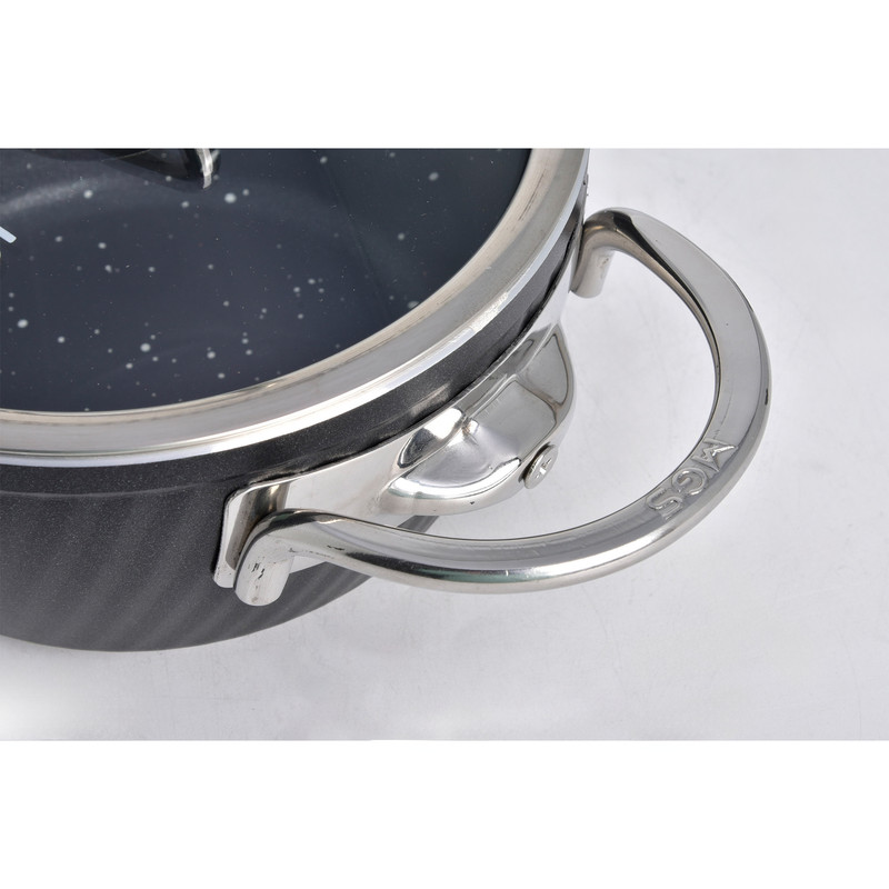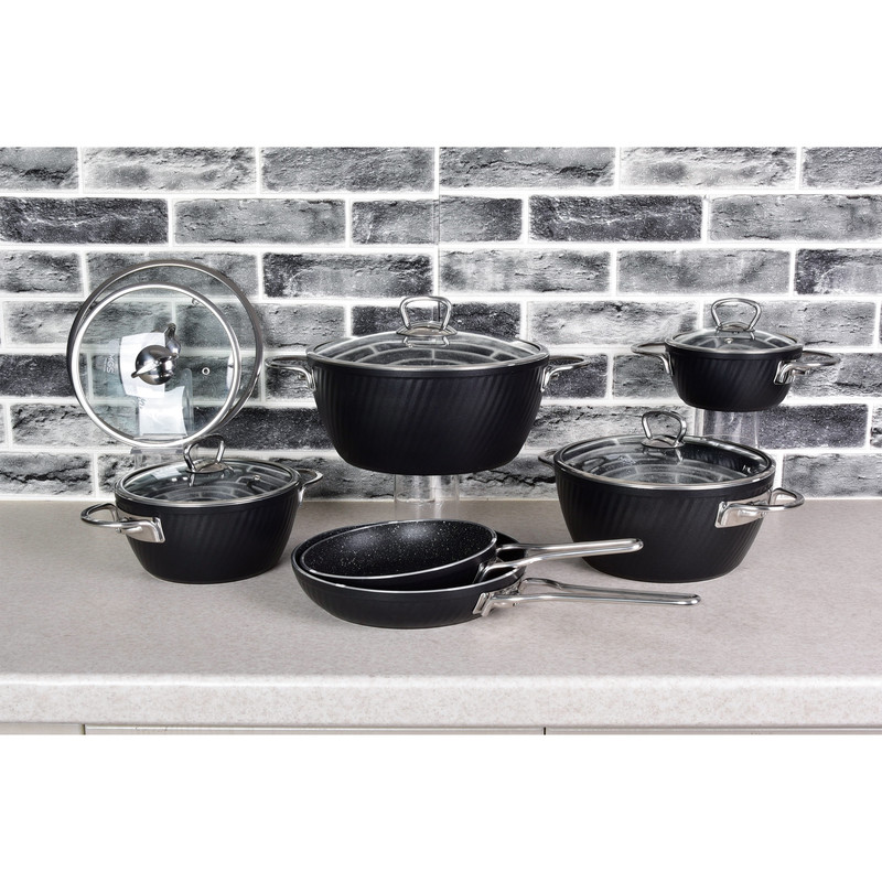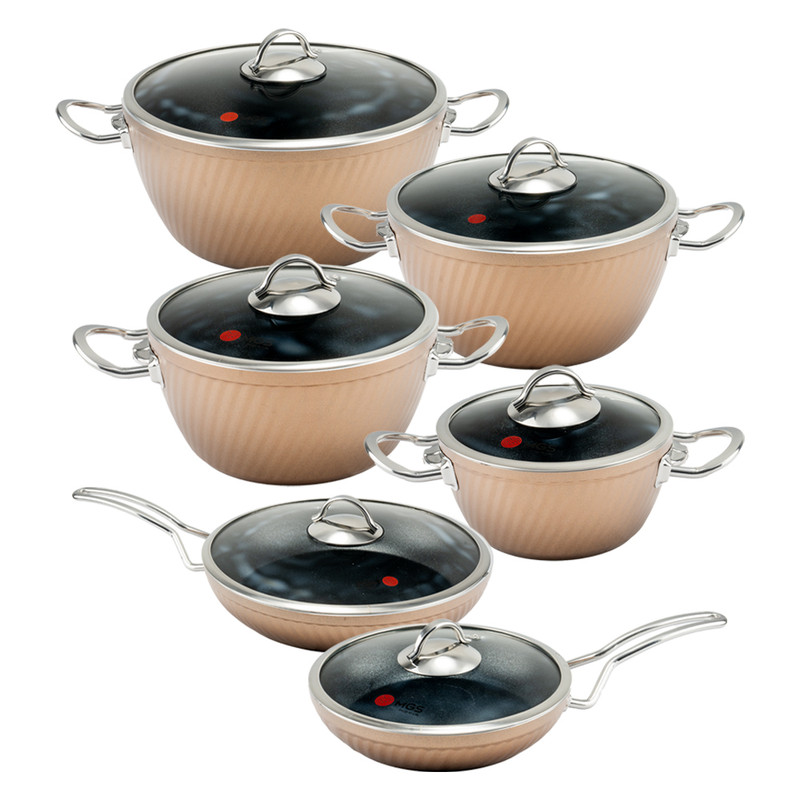 شامل : تابه تک دسته سایز 20 همراه درب, تابه تک دسته سایز 24 همراه درب , قابلمه سایز 20 همراه درب, قابلمه سایز 24 همراه درب, قابلمه سایز 28 همراه درب