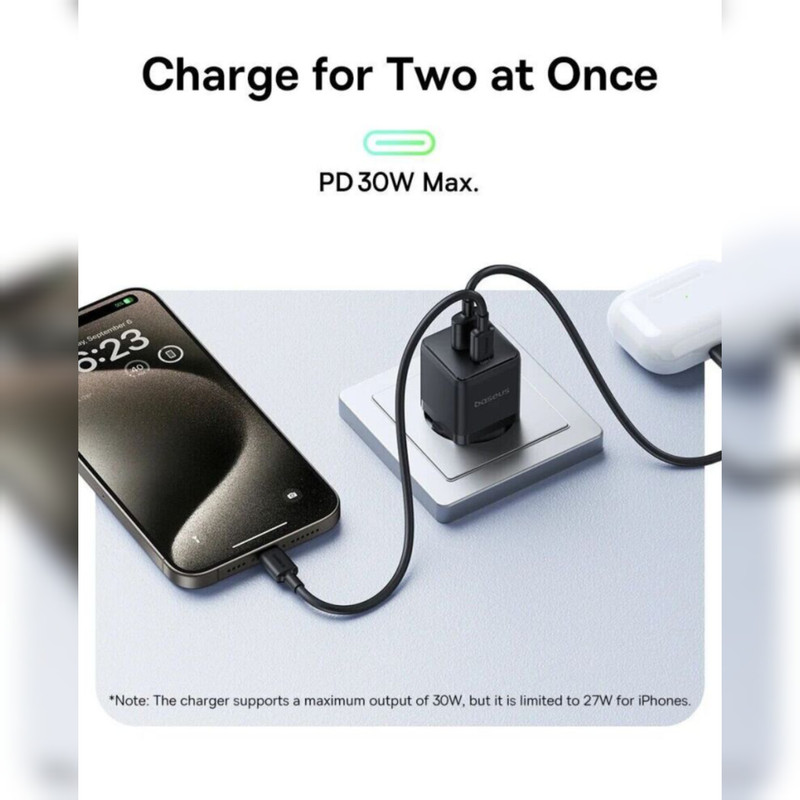 یکی دیگر از مزایای شارژر سریع Palm Baseus قابلیت شارژ همزمان دو دستگاه است.