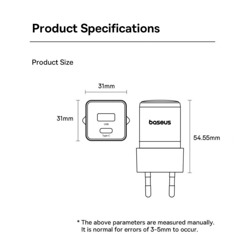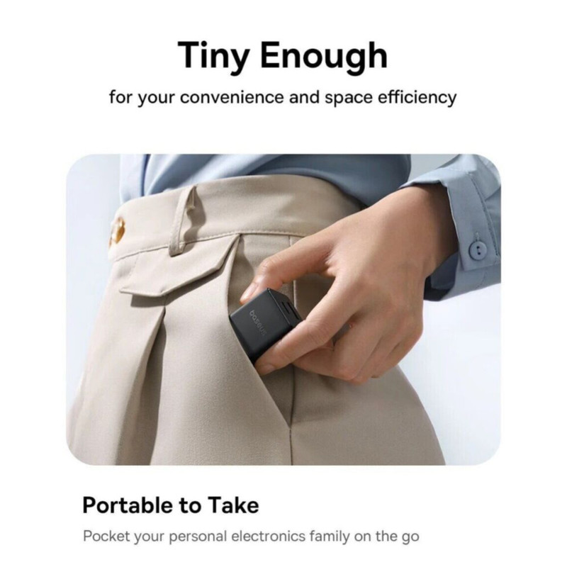 یکی از جنبه های کلیدی هر شارژر ابعاد آن است. شارژر سریع Palm Baseus با اندازه جمع و جور و مینیاتوری خود جلب توجه می کند: 31 در 31 در 54 میلی متر. به دلیل اندازه آن، واحد شارژ به راحتی در یک جیب یا کیف قرار می گیرد و آن را به یک همراه ایده آل برای سفر تبدیل می کند.