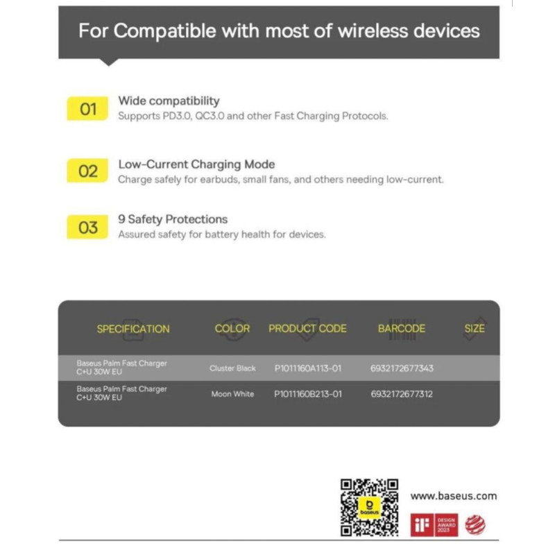 شارژر سریع Palm Baseus از چندین پروتکل شارژ سریع محبوب مانند PD3.0 و QC3.0 پشتیبانی می کند. این قابلیت به شما امکان می دهد زمان شارژ دستگاه های خود را به میزان قابل توجهی کاهش دهید، که به ویژه در زمان تمام شدن زمان بسیار مهم است.