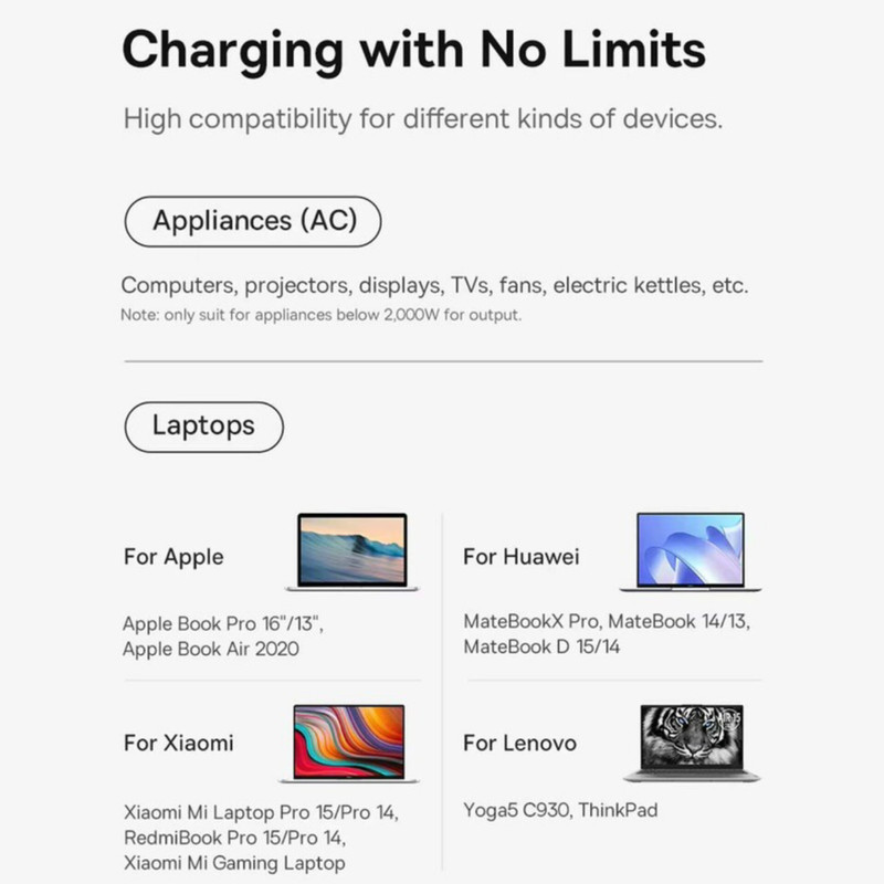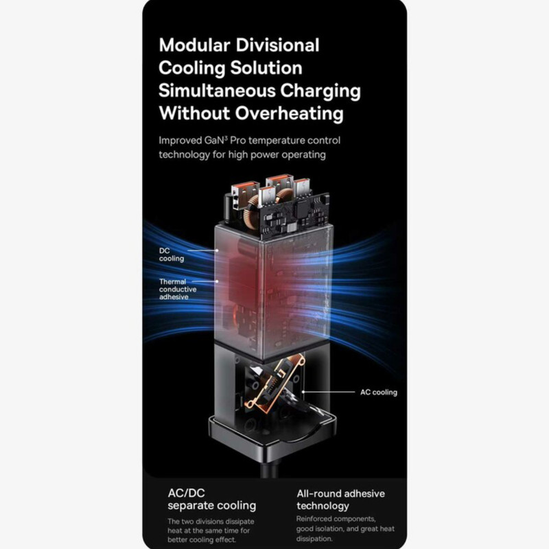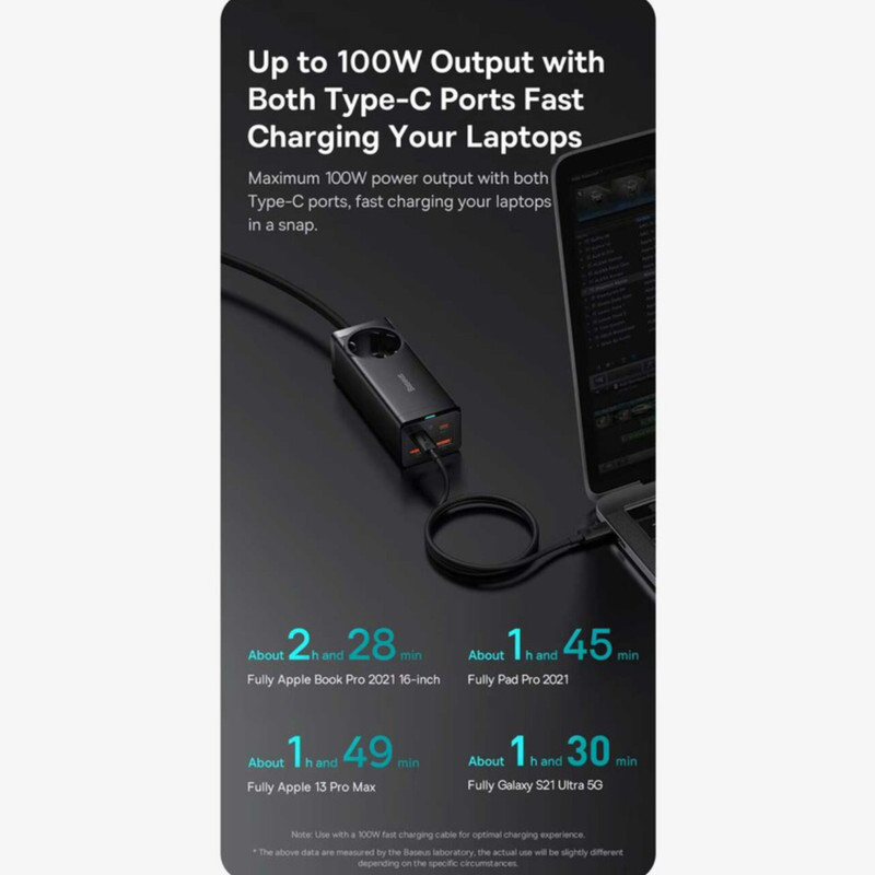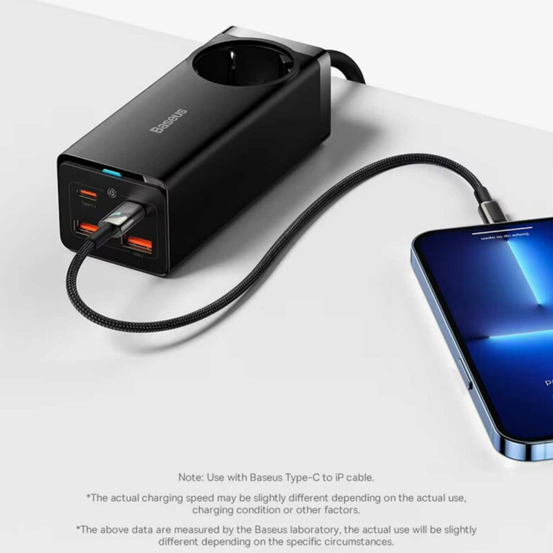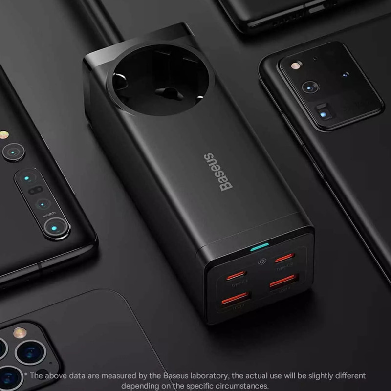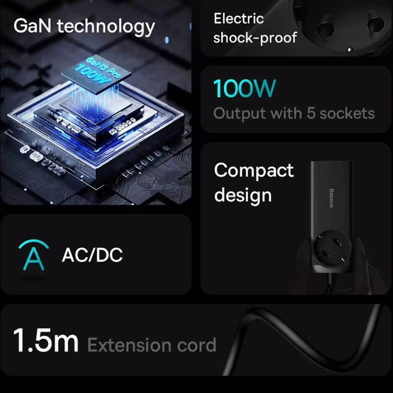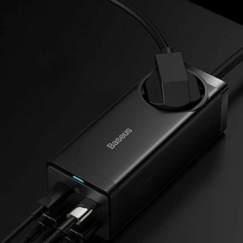 بیسوس برای چند راهی CGAN100-1ACE یک سوکت برق، دو پورت Type-C و دو پورت USB طراحی کرده؛ حداکثر توانی برابر با 100 وات دارد؛ بنابراین به راحتی میتوانید لپ تاپ، گوشی و تبلتهای مختلف با سیستمعاملهای اندروید و iOS را شارژ کنید. درگاه تایپ سی پروتکلهای Apple2.4A, QC2.0, QC3.0, QC4+, AFC, FCP, SCP, PE, PD3.0 and PP و ... را داراست و درگاه یو اس بی هم از پروتکلهای Apple2.4A, QC2.0, QC3.0, AFC, FCP, SCP, PE و ... برخوردار است.