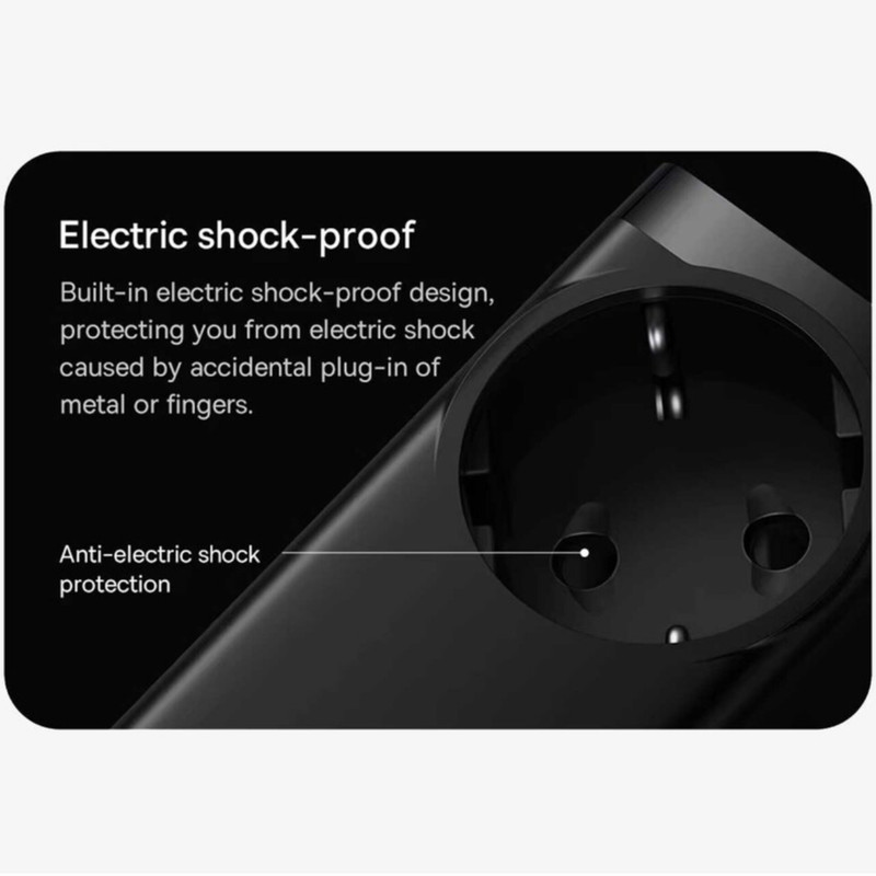 دو شاخه چند راهی بیسوس از نوع EU میباشد که برای استفاده از آن در ایران نیازمند تبدیل نیست. کابلی به طول 1.5 متر دارد و با کمک آن به راحتی میتوانید مشکل دور بودن از پریز برق را حل کنید.