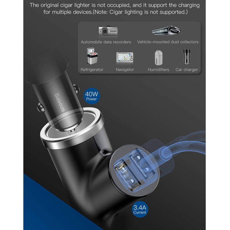 امروزه داخل هر اتومبیلی کی شارژر فندکی به چشم می خورد اما این امر یک بدی هم دارد که نمی توان هم از شارژر فندکی استفاده کرد و هم از خود فندکی اتومبیل این یک ایراد برای این محصول به حساب می آید.کمپانی Baseus با ساخت شارژر فندکی Baseus Y Type Dual USB این مشکل را به کلی از بین برده است زیرا این محصول دارای دو پورت USB خروجی و یک پورت فندکی می باشد.شما می توانید به راحتی از طریق این محصول دو گوشی را به طور همزمان شارژ کنید و هر محصول دیگه ای رو به پورت فندکی متصل کنید.