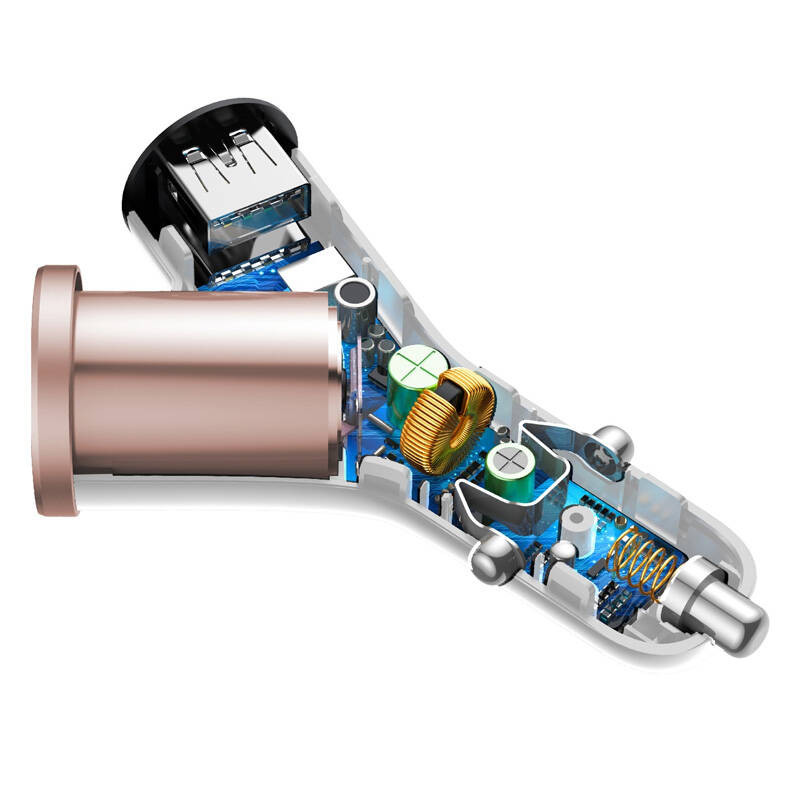 شما می توانید از طریق پورت های این محصول دو گوشی را با شدت جریان و ولتاژ 5V-3.4A شارژ کنید که سرعت بالایی برای شارژ به حساب می آید.جنس بدنه این محصول از پلاستیک + ABS و متریال PC بوده که مقاومت بالایی در برابر ضربه و حرارت دارد.ابعاد این محصول به گونه ای بوده که هرگز فضایی از داخل اتومبیل شما را اشغال نمی کند.کمپانی بیسوس در ساخت این محصول ازیک چیپست هوشمند استفاده کرده که وظیفه محافظت از باتری گوشی شما را در برابر نوسانات و اتصالات کوتاه را بر عهده دارد.