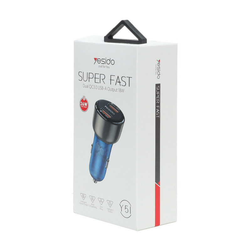 شارژر فندکی Y51 محصولی از یسیدو است. این فندکی دارای دو پورت خروجی USB فست شارژر است. طراحی بدنه خاص و زیباست. ابعاد محصول کاملا مناسب و 3.37x7.23x3.37 سانتیمتر است. توان کل خروجی این محصول 36 وات است. توان خروجی هر پورت 18 وات می باشد.این فندکی شارژر سازگار با انواع گوشی و تبلت و سایر دستگاه های اکترونیکی است.