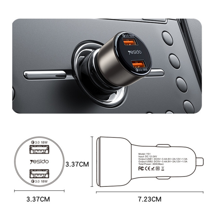 شارژر فندکی 36 وات یسیدو مدل Y51