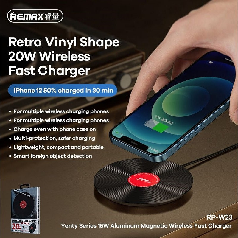 شارژر بی سیم برند ریمکس مدل RP-W23 این شارژر 20w بوده و فست شارژ را پشتیبانی میکند و سبک و جمع و جور و قابل حمل میباشد و همراه با کابل میکرو یو اس بی ارائه می شود.