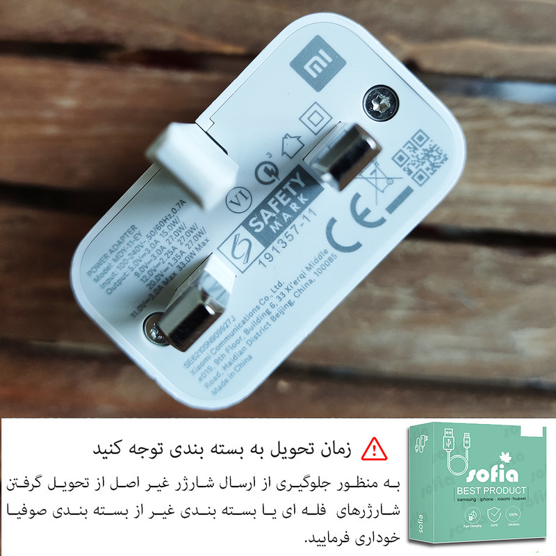 شارژر از جمله وسایل بسیار مهم همراه گوشی است که ممکن است در صورت صدمه دیدن شارژر خود مجبور به خرید شارژر جدید شویم وپیدا کردن شارژر اصلی که دقیقا مشابه شارژر خود گوشی عمل کند قدری سخت است.شارژر 33وات سه پین شیائومی مدل صوفیا صدرصد اورجینال بود و با قدرت هر چه بیشتر میتواند گوشی شما را شارژ نمایید.علاوه برآداپتور شارژ ، کابل نیز باید بتواند ولتاژ مورد نیار را از کله شارژ به گوشی منتقل کند که کابل سوکت نارنجی همراه این شارژر به خوبی این عمل را انجام میدهد.شارژر هنگام شارژ نباید داغ کند چرا که داغ کردن میتواند صدمات جبران ناپذیری را به گوشی شما وارد کند ، داغ کردن نامتعارف یکی از دلایل کپی بودن شارژر است.زمان تحویل گرفتن این محصول دقت کنید که شارژ داخل پک صوفیا قرار داده شده باشد(برای اطمینان از اصل بود کالا)