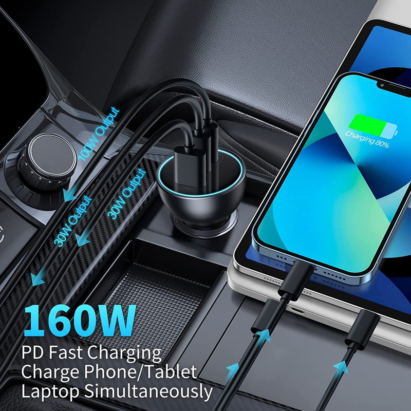 شارژ خالی کردن گوشی یکی از معضلات مسافرتهای جادهایست که معمولا با شارژر فندکی ماشین حل میشود. به همین دلیل خرید شارژری که دارای پورت های مناسب باشد کاملا لازم و ضروریست. شارژر فندکی ماشین بیسوس Baseus QC5.0 Dual Type C USB Car Charger دارای دو پورت فست شارژ تایپ سی و یک پورت فست یو اس بی است که از استانداردهای کوالکام بهره میبرند. توان خروجی کلی این شارژر 160 وات است و در صورت استفاده از یک پورت میتوانید تا 100 وات توان بگیرید.