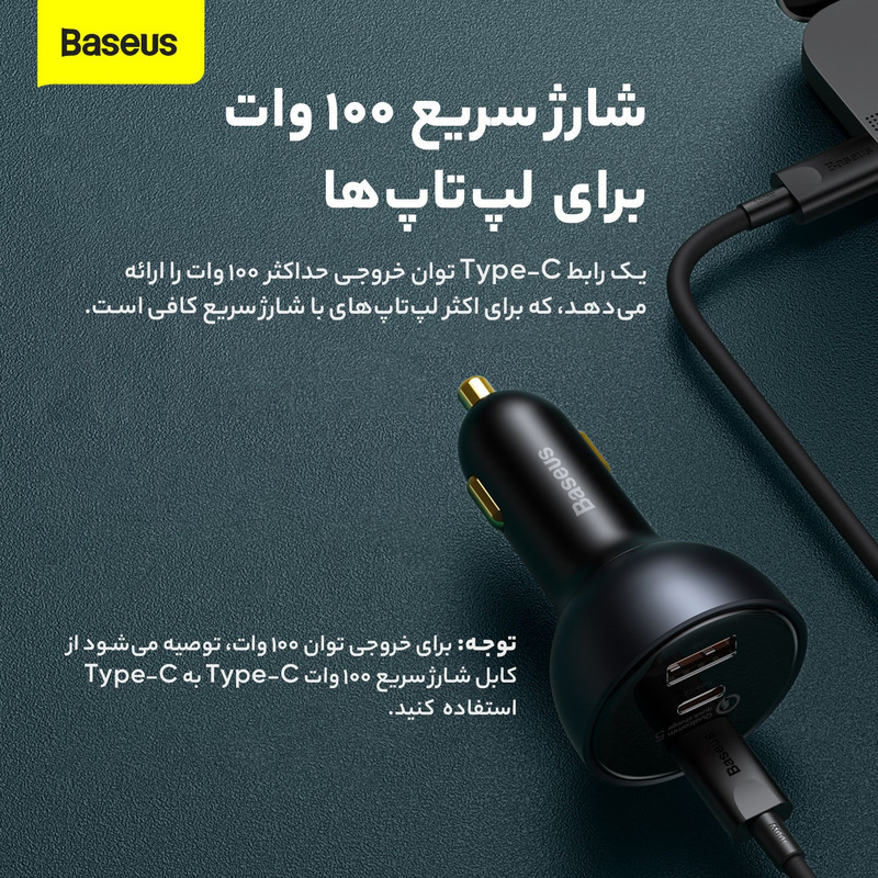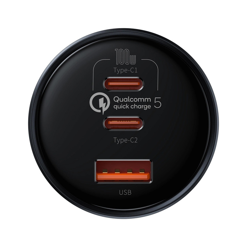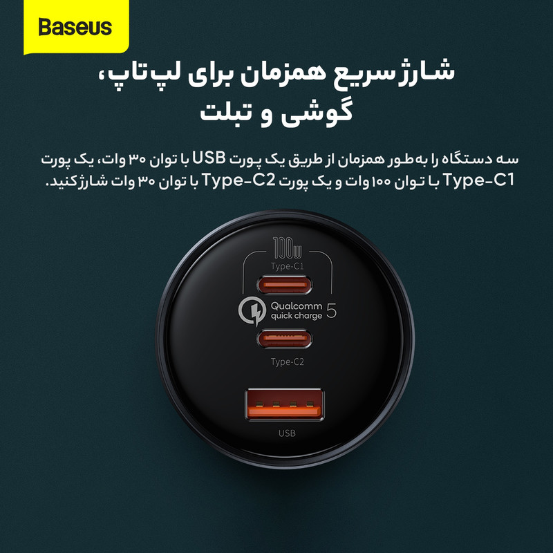 همانطور که گفتیم روی بدنه شارژ فندکی Baseus TZCCZM-0G دو پورت Type C و یک پورت USB قرار دارد که میتوانید به طور همزمان از یکی برای شارژ لپ تاپ و از دیگری برای شارژ گوشی استفاده کنید.