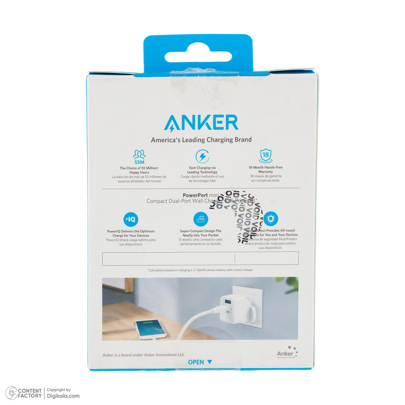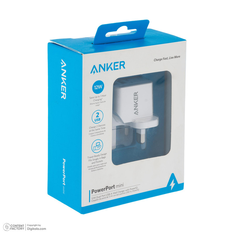 شارژر دیواری 12 وات دو پورت انکر مدل PowerPort Mini A2620
