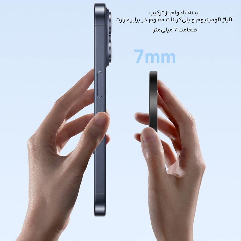 Baseus در طراحی این مدل، تعادلی کامل میان زیبایی و دوام ایجاد کرده است. بدنه شارژر از ترکیب آلیاژ آلومینیوم و پلیکربنات مقاوم در برابر حرارت ساخته شده تا علاوه بر ظاهری مدرن و لوکس، در برابر فشار، سایش و گرمای مداوم مقاوم باشد. ضخامت تنها 7 میلیمتر و طراحی مینیمال آن باعث میشود با هر محیطی از اتاق خواب تا دفتر کار هماهنگ باشد. کابل داخلی 1.5 متری با روکش نایلون بافتهشده نیز علاوه بر مقاومت در برابر گرهخوردگی و پارگی، جلوهای منظم و حرفهای به میز شما میدهد. این شارژر در عین ظرافت، برای استفاده روزمره و طولانیمدت ساخته شده است.