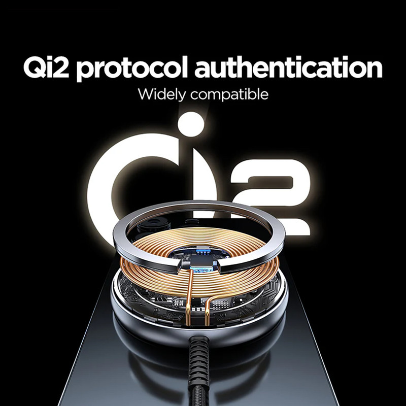 شارژر وایرلس Baseus Simple Mini4 Air با بهکارگیری آهنرباهای قدرتمند داخلی، اتصال دقیق و بدون لغزش میان شارژر و گوشی را فراهم میکند. این طراحی مغناطیسی باعث میشود دستگاه شما همیشه در بهترین نقطه القای انرژی قرار گیرد تا بیشترین بازده شارژ حاصل شود. به لطف پشتیبانی کامل از استاندارد MagSafe، کاربران سری آیفون 12 تا 16 میتوانند گوشی خود را تنها با یک حرکت ساده روی پد قرار دهند تا فرآیند شارژ بلافاصله آغاز شود. حتی در زمان استفاده از گوشی هنگام شارژ – مثل تماشای ویدیو یا پاسخ به تماس – میدان مغناطیسی پایدار از جدا شدن تصادفی دستگاه جلوگیری میکند. برای سایر گوشیهای دارای فناوری Qi نیز حلقه فلزی مخصوص در نظر گرفته شده تا تجربه شارژ مغناطیسی بدون نیاز به کابل برای همه کاربران فراهم باشد.