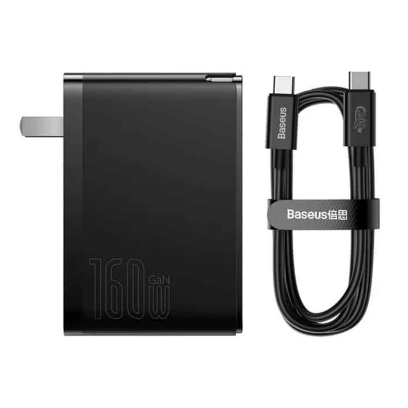 نام تجاری این محصول شارژر دیواری سوپر فست شارژ تایپسی و یواسبی 160 وات بیسوس Baseus GaN5 Pro Fast Charger 2C+U 160W CN CCGP08000 بوده و همراه آن کابل دوسر تایپ سی هم ارائه شده است. روی بدنه آن چراغ آبی رنگ LED مشاهده میکنید که گویای عملکرد صحیح شارژر فوق سریع است.